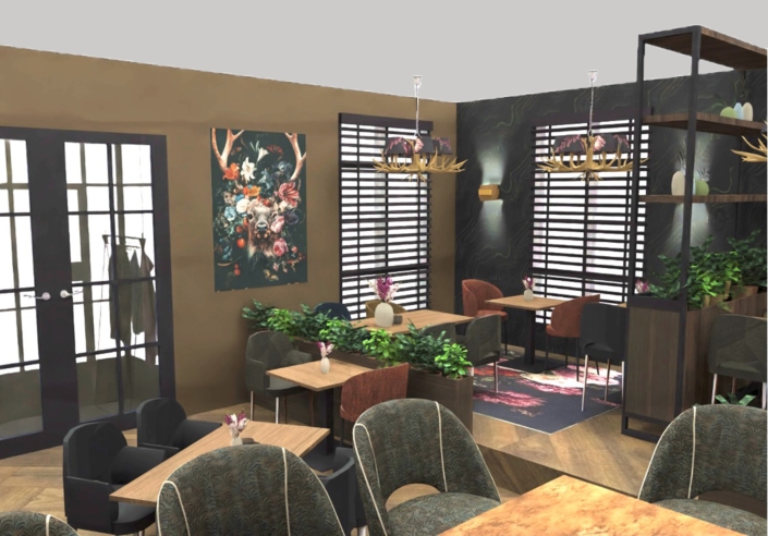 Ik heb 3D ontwerpen/ visualisaties voor verschillende projecten gemaakt zoals restaurants, hotels en woningen. De visualisaties heb ik gemaakt met het programma SketchUp. Vervolgens heb ik ze gerenderd met het programma Pcon Planner. Tot slot heb ik Photoshop gebruikt om de visualisaties te bewerken.